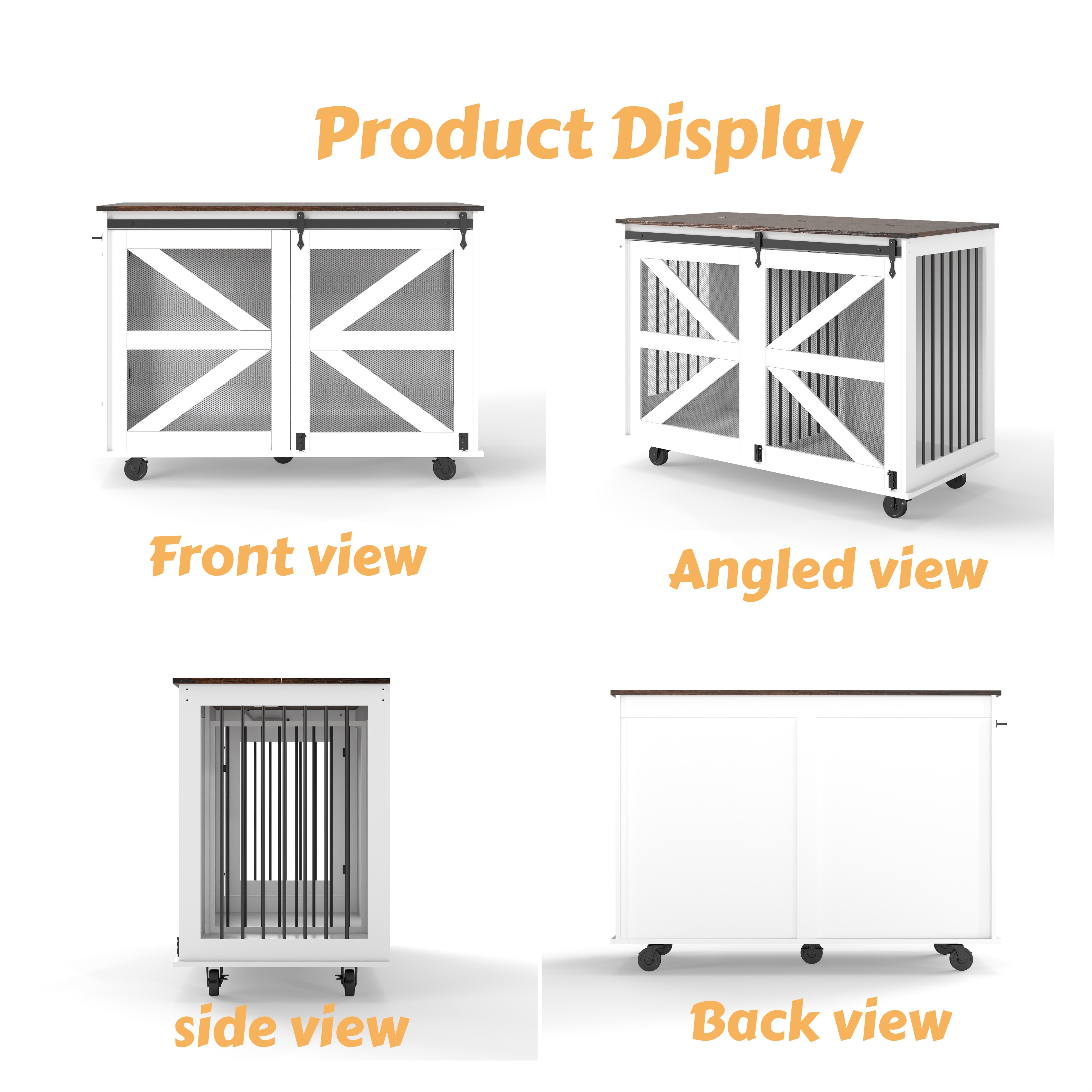 Product Name:47.2" Mobile Dog Crate with Flip-Top Feeding Door, Dual-Access & 5 Caster System (2 Locking), Side Hooks - Multi-Functional Pet Kennel,double dog crate furniture